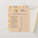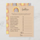 These adorable baby shower party feature trendy boho style and trendy handwritten script. Neutral cute painted watercolor rainbow. Matching games available.