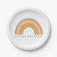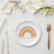 A boho rainbow perfect for parties and baby showers a like adorns this party plate.