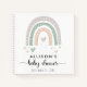 Cute modern boho baby shower guest book featuring an watercolor of a sage green, orange and lavender rainbow with hearts and baby shower in a stylish script. Personalise with the mother-to-be's name and shower date.