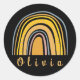 Boho Rainbow with Personalised Name Whimsical Classic Round Sticker
