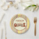 Boho Rainbow Woodland Bear First Birthday Paper Plate