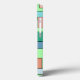 This phone case has a boho modern design of rectangles attached to horizontal lines in various sizes and boho colours.