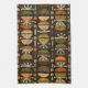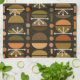 Boho Retro Bowls Lines Dark Earth Tones Tea Towel