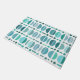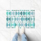 A vintage style mid century modern pattern with geometric bowls shapes, dots and lines. Shades of blue-green and white.