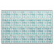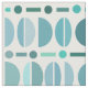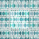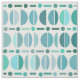 A vintage style mid century modern pattern with geometric bowls shapes, dots and lines. Shades of blue-green and white.