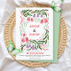 Colourful boho retro branches and folklore flowers wedding Invitation with QR code on the back. This wedding invitation is a vibrant display of boho retro branches and folklore flowers. The frame features a mix of retro branches in shades of dark and mint green, as well as lilac purple and peach flowers. The combination of these colours creates a colourful and eye-catching design. On the back of the invitation, there is a QR code to RSVP online on munt green.