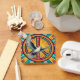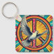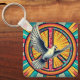 Dove and peace sign in red, blue, teal and red hippie retro boho vibes.