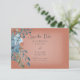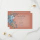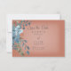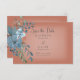 This wedding save the date card design features beautiful blue and burnt orange rust watercolor corner florals on a soft whit blur rectangle placed on a burnt orange rust background. Soft and delicate; perfect for any season. Created by Simply Farmhouse Press.