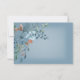 This wedding response card design features beautiful blue and burnt orange rust watercolor corner florals on a soft whit blur rectangle placed on a dusty blue background. Soft and delicate; perfect for any season. Created by Simply Farmhouse Press.