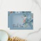 This wedding thank you card design features beautiful blue and burnt orange rust watercolor corner florals on a soft white blur rectangle placed on a dusty blue background. Soft and delicate; perfect for any season. Created by Simply Farmhouse Press.