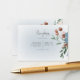 This wedding reception card design features beautiful blue and burnt orange rust watercolor corner florals on a soft blue blur rectangle placed on a white background. Soft and delicate; perfect for any season. Created by Simply Farmhouse Press.