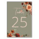 Boho Rust & Neutral Fall Floral Sage Green Table Number