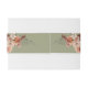 Introducing our exquisite Cream Geometric Wedding invitation belly band, a perfect blend of elegance and bohemian charm! This stunning design features a sage green background that sets the tone for a romantic and timeless celebration. Adorned with a captivating boho floral bouquet, nestled in the corner of the frame, this design embodies the essence of natural beauty and rustic allure. The boho floral bouquets showcase a delicate blend of cream, peach, blush, and rust-toned flowers, meticulously arranged with lush greenery. These ethereal blooms symbolise love, joy, and the promise of a blossoming future together. The harmonious combination of colours and textures creates an enchanting visual spectacle that will captivate your guests' hearts. Created by Simply Farmhouse Press.