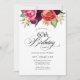 This wonderfully feminine and rustic boho style 60th birthday party invitation has a sumptuous rich colour palette in terracotta, deep peach, burgundy red, purple, teal and yellow. The lovely watercolor botanical elements have a nature-inspired organic appeal and make the invitation pop with style. Elegant calligraphy script spells out the word "Birthday" with flair. Personalise the text template with your event details. The age "60th" may be edited to any age!