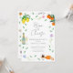 Beautiful whimsical boho cheese and wine themed modern colourful watercolor wedding engagement invitation with simple botanicals, orange and lemon citrus theme ideal for a sunny summer European themed wedding engagement party. Original artwork by artist Catherine Sweetman includes foliage, wildflowers, cheese and wine, musical notes and wine flutes of sparkling bubbly wine. Whimsical handwriting and modern typography script with easy to personalise templates to add names, the date and other essential information along with the bride and groom to be initials on the sparkling wine bottle label illustration. Colour palette includes lemon, yellow, orange, green, blue, purple and pink.