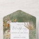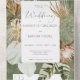 AVAILABLE WITH OR WITHOUT A QR CODE OR WITH OR WITHOUT DINNER SELECTION OPTIONS. Modern and unique, this design features bouquet of dried grasses, flowers, and plants in boho style on a soft green background that has been distressed with champagne gold. Add a QR code to your invitation so that gusts can quickly access your wedding Website for details, directions, menu options, and more, or add your gift registry Web URL. Personalized All-In-One invitations are a unique combination of both a beautifully printed custom invitation with an easy to tear off perforated RSVP postcard. And they are so easy to use! You simply fold, then seal the back flap with the three included clear stickers, and mail. And when your guests receive your custom invite, they just tear the perforated RSVP Card off and drop it back in the mail to you!