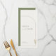 The front side offers a stunning contrast with a faux linen texture, framed by a clean sage green border and adorned with a subtle, hand-drawn botanical accent in the corner. Your menu card is presented in a stylish mix of elegant serif and flowing script fonts, all in a matching sage green hue.
