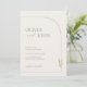 This invitation beautifully blends minimalist elegance with a warm bohemian vibe. The back features an arch-shaped Details slot with QR for you to add you own QR Code, reception, accommodation and RSVP details., set against a calming sage green background with delicate white line-art arches.