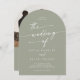 Boho Sage Green Photo QR Code Arch Wedding Invitation