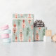 A fun trendy boho sage green, terracotta and pink feathers and trees on this Christmas wrapping paper for the holiday's.