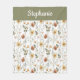 Boho Sage Green Watercolor Wildflower Monogram Fleece Blanket
