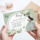 Boho Sage Green White Roses Princess XV Años Reply RSVP Card