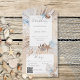 AVAILABLE WITH OR WITHOUT A QR CODE OR WITH OR WITHOUT DINNER SELECTION OPTIONS. This design features a beach themed frame of tan boho sea grasses, tan and brown shells, and dusty blue starfish and sea life on a soft sand tan background that has been distressed with champagne gold. Add a QR code to your invitation so that gusts can quickly access your wedding Website for details, directions, menu options, and more, or add your gift registry Web URL. Personalised All-In-One invitations are a unique combination of both a beautifully printed custom invitation with an easy to tear off perforated RSVP postcard. And they are so easy to use! You simply fold, then seal the back flap with the three included clear stickers, and mail. And when your guests receive your custom invite, they just tear the perforated RSVP Card off and drop it back in the mail to you!