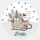 Boho Santa on Sleigh With Gifts Snowflakes Name Classic Round Sticker