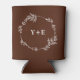 Boho Simple Brown Monogrammed Wedding Can Cooler
