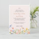 This stylish & elegant monogrammed wedding invitation features Watercolor wild flowers, leaves, dragonflies in soft watercolor palette of pink, blue yellow and green .