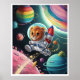 Transform your child's room into a magical universe with our enchanting poster featuring a cute and funny lion traveling through space on a rocket. This captivating poster, with bright colors and adorable design, will stimulate your little explorer's imagination.