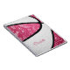 This cute basketball themed notebook features the realistic image of an abstractly oversized basketball that has recolored alternating pink and white panels with delicate hand-drawn doodle flowers, feathers and paislies patterned on the basketball's pink panels - customise with the athlete's name - by katz_d_zynes