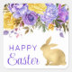 Boho Spring Flowers and Gold Bunnies Happy Easter Square Sticker