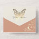 A one-of-a-kind bohemian spring peach all-in-one wedding invitation, featuring a romantic faux gold butterfly that symbolises spiritual rebirth, hope, and life. This elegant design exudes charm and deep meaning. Personalise it with your wedding details and RSVP information for a truly unforgettable touch.