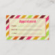 A cosmetologist / salon business card featuring a background of diagonal stripes in boho inspired colours. Personalise the front with your business contact information. Use the back to write appointment information.