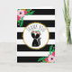 A baby shower thank you card featuring an illustration of a baby skunk wearing a flower crown over a black and white striped background with floral designs at top left and bottom right. Matching baby shower invitations at coordinating items are available at Jill's Paperie.
