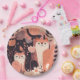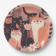 Boho Style Cats and Flowers Pink Birthday Party Paper Plate
