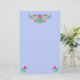 Boho Style Floral Border on Light Blue Stationery