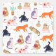 Boho Summer Cute Cats Green Cactus Square Sticker