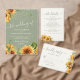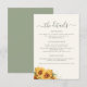 Modern rustic boho floral watercolor sunflowers sage green and ivory cream wedding guest information details invitation insert card with a simple handwriting typography script.