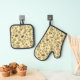 Boho Summer Floral Honey Bee Pattern Yellow Cute Oven Mitt & Pot Holder Set
