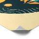 A cute boho sun and moon wall art poster with a minimalist mid century modern design in a complimentary green and orange colour palette
