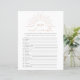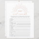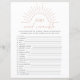 This baby shower word scramble game is perfect for a baby shower or baby sprinkle. This game card features a boho sun. Perfect for a gender neutral celebration. You can personalise this design by clicking on "Personalise this template" or if you wish to change the font, colours or arrange the design elements in a different way you can click on "Edit using Design Tool". Answer Key: 1. Diaper 2. Bassinet 3. Bottle 4. Crib 5. Pacifier 6. Changing Table 7. Stuffed Animal 8. Stroller 9. Rubber Ducky 10. Blanket 11. Teether 12. Formula 13. High Chair 14. Mobile 15. Thermometer 16. Baby 17. Milk 18. Booties 19. One-sie 20. Teddy Bear