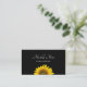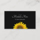 Boho yellow sunflower business card, with a floral image on a black background. With script typography, you can customise with your own name or title. The back of the card has a white background and black customisable lettering. Great for getting the word our about your business.