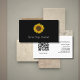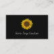 Interior Designer QR code black business card, with a yellow sunflower design and white typography. With customizable text, you can add your own information. You also add your website to the QR code field for more promotion. Great for adding a boho botanical touch to your interior design or professional stylist business.