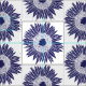 Rustic boho sunflower patterned fabric in classic navy blue and white