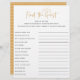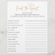 Boho script "Find the Guest" graphic in rustic yellow with line art sun detail, baby shower game sheet with matching rustic yellow pattern backing.