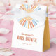 Welcome your little ray of sunshine with this Boho Sunshine Neutral Baby Shower Favour Box featuring an adorable yellow, gold, orange, blue and peach watercolor sunshine.