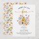 Welcome your little one with our charming Honey Bee boho baby shower invitation! Our serene design showcases a white background and the endearing phrase "Sweet as Can Bee." A whimsical watercolor beehive is surrounded by delicate pink wildflowers, greenery, and buzzing bees. The simple yet elegant template can be customized with your own event details. The reverse side is adorned with a beautiful floral pattern that complements the front design. Celebrate your precious bundle of joy with this sweet invitation.
