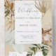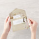 AVAILABLE WITH OR WITHOUT A QR CODE OR WITH OR WITHOUT DINNER SELECTION OPTIONS. Modern and unique, this design features bouquet of dried grasses, flowers, and plants in boho style on a soft tan background that has been distressed with champagne gold. Add a QR code to your invitation so that gusts can quickly access your wedding Website for details, directions, menu options, and more, or add your gift registry Web URL. Personalised All-In-One invitations are a unique combination of both a beautifully printed custom invitation with an easy to tear off perforated RSVP postcard. And they are so easy to use! You simply fold, then seal the back flap with the three included clear stickers, and mail. And when your guests receive your custom invite, they just tear the perforated RSVP Card off and drop it back in the mail to you!